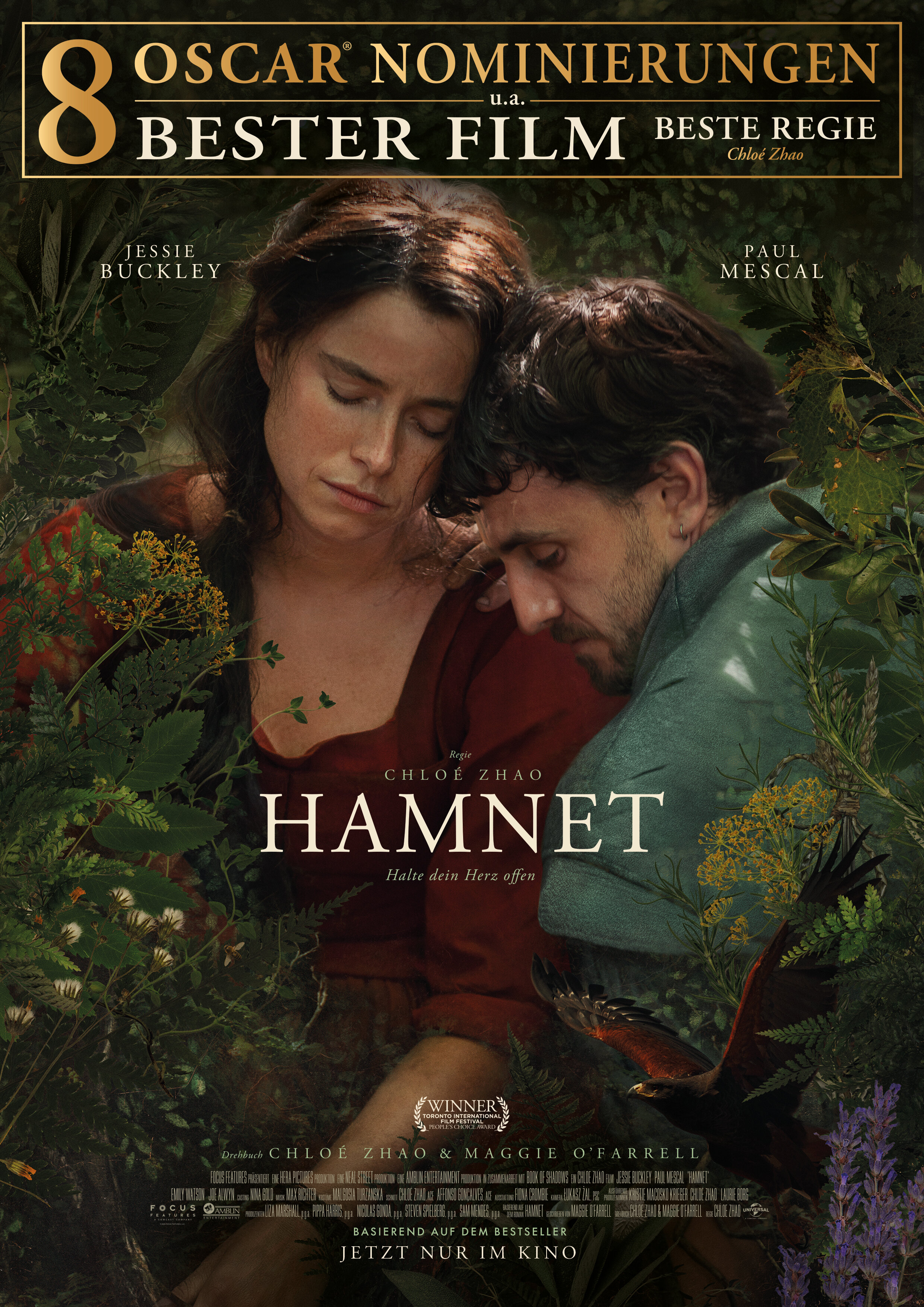 Basierend auf dem preisgekrönten Bestseller von Maggie O’Farrell verbindet Hamnet historische Kulisse mit intensiver Emotionalität. Jessie Buckley und Paul Mescal berühren mit großer Intensität, während Chloé Zhao eine intime Geschichte über Liebe, Trauer und die tröstende Kraft der Kunst erzählt. Ein bildgewaltiges, tiefgehendes Kinoerlebnis, das lange nachhallt.