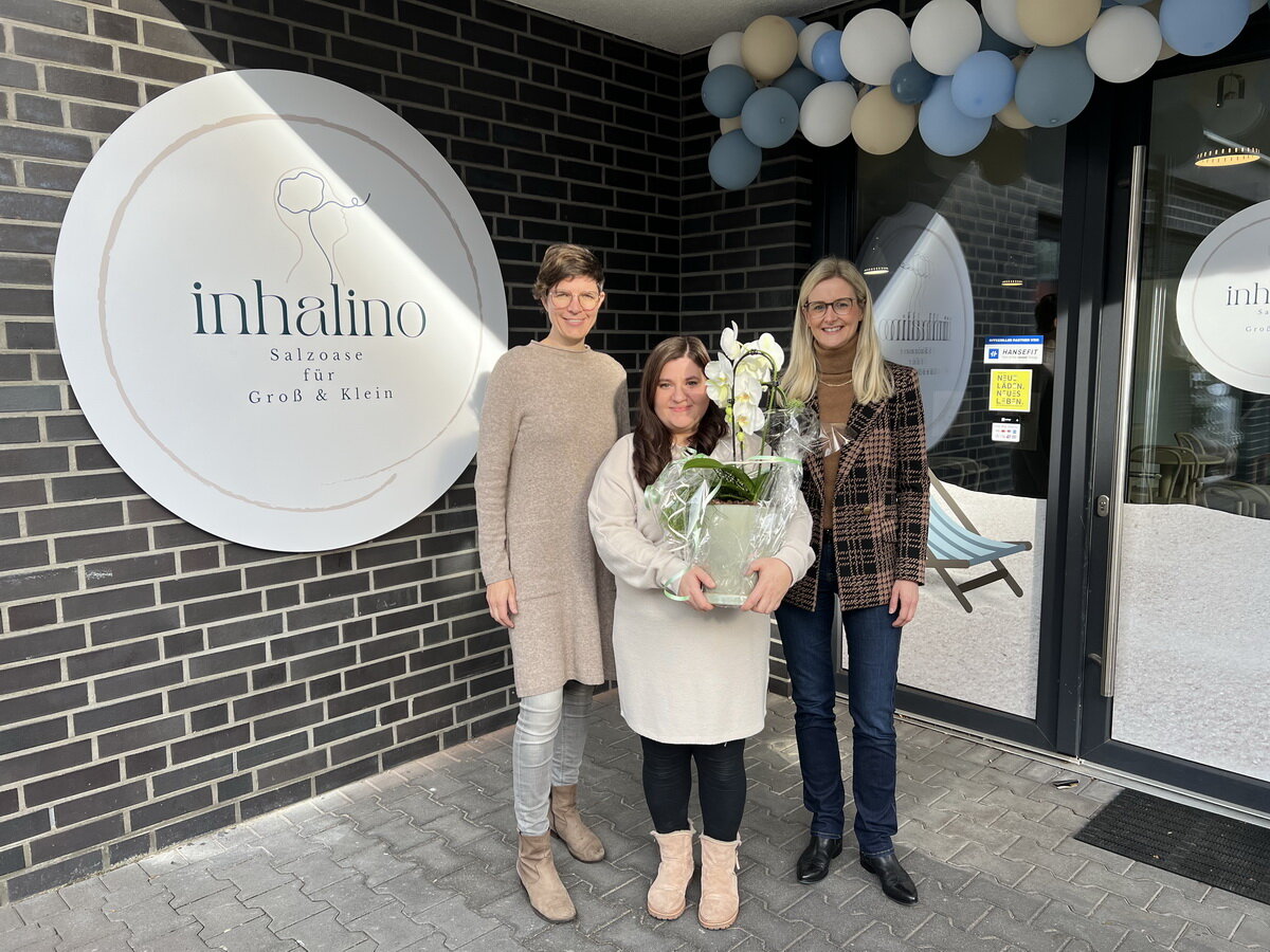Buket Eker strahlt über das ganze Gesicht. Seit wenigen Tagen hat ihre Salzoase Inhalino in der Lohner Innenstadt eröffnet. Der Grund ihres Strahlens: die große und positive Resonanz der Bürgerinnen und Bürger. Davon bekommen auch Bürgermeisterin Dr. Henrike Voet und Wirtschaftsförderin Anne Nußwaldt einen Eindruck. Sie begrüßten Buket Eker jüngst offiziell in der Innenstadt und gratulierten zur Neueröffnung.