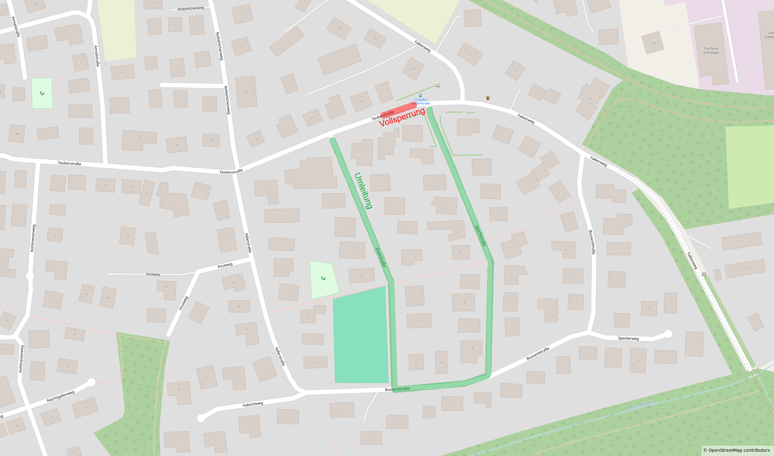 Während der Sperrung wird der Verkehr über die Spechtstraße, Bussardstraße und Elsterstraße umgeleitet.